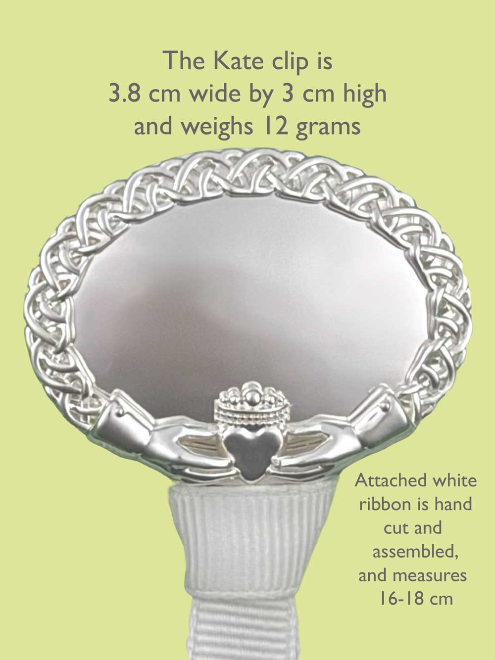 EACH SET INCLUDES: ~ silver clip with attached white ribbon ~ 2nd ribbon in the color of your choice (additional ribbons & ties available here) ~ 4x4 inch polishing cloth ~ Jewelry box for clip storage