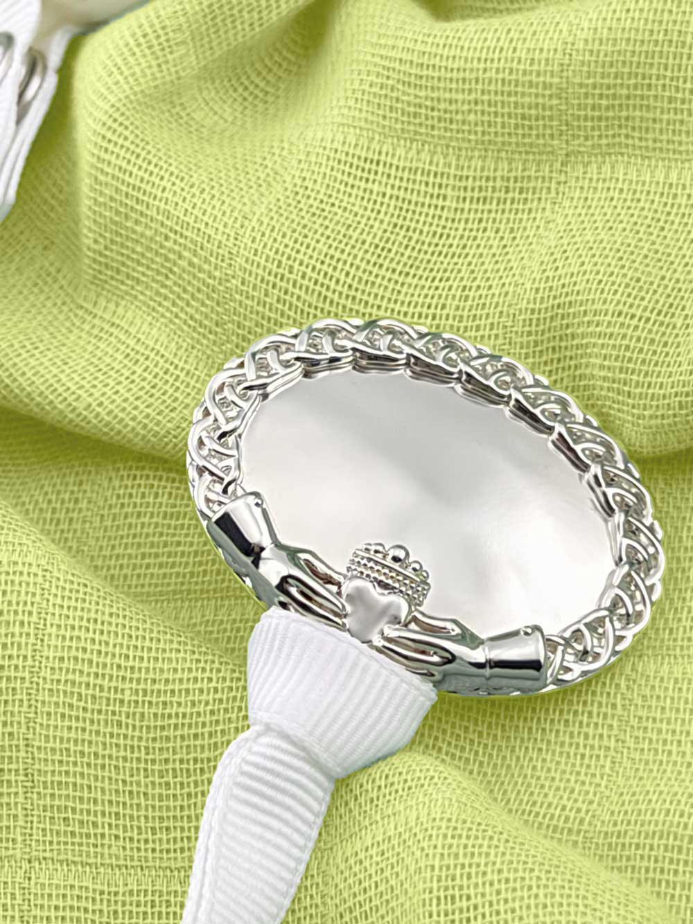 Each Royal Silver Pacifier Clip is not just a practical accessory, but also a treasured keepsake! With the option for custom engraving, you can make it uniquely special for your little prince or princess.